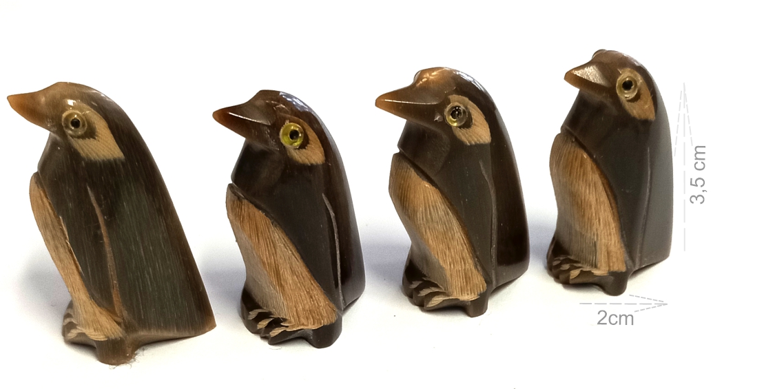 Zvířátka z buvolího rohu - skupina 4ks, 2 x 3,5cm. Ruční práce Thajsko. Suvenýr může vykazovat drobné nedokonalosti přírodního materiálu. (poslední kusy)