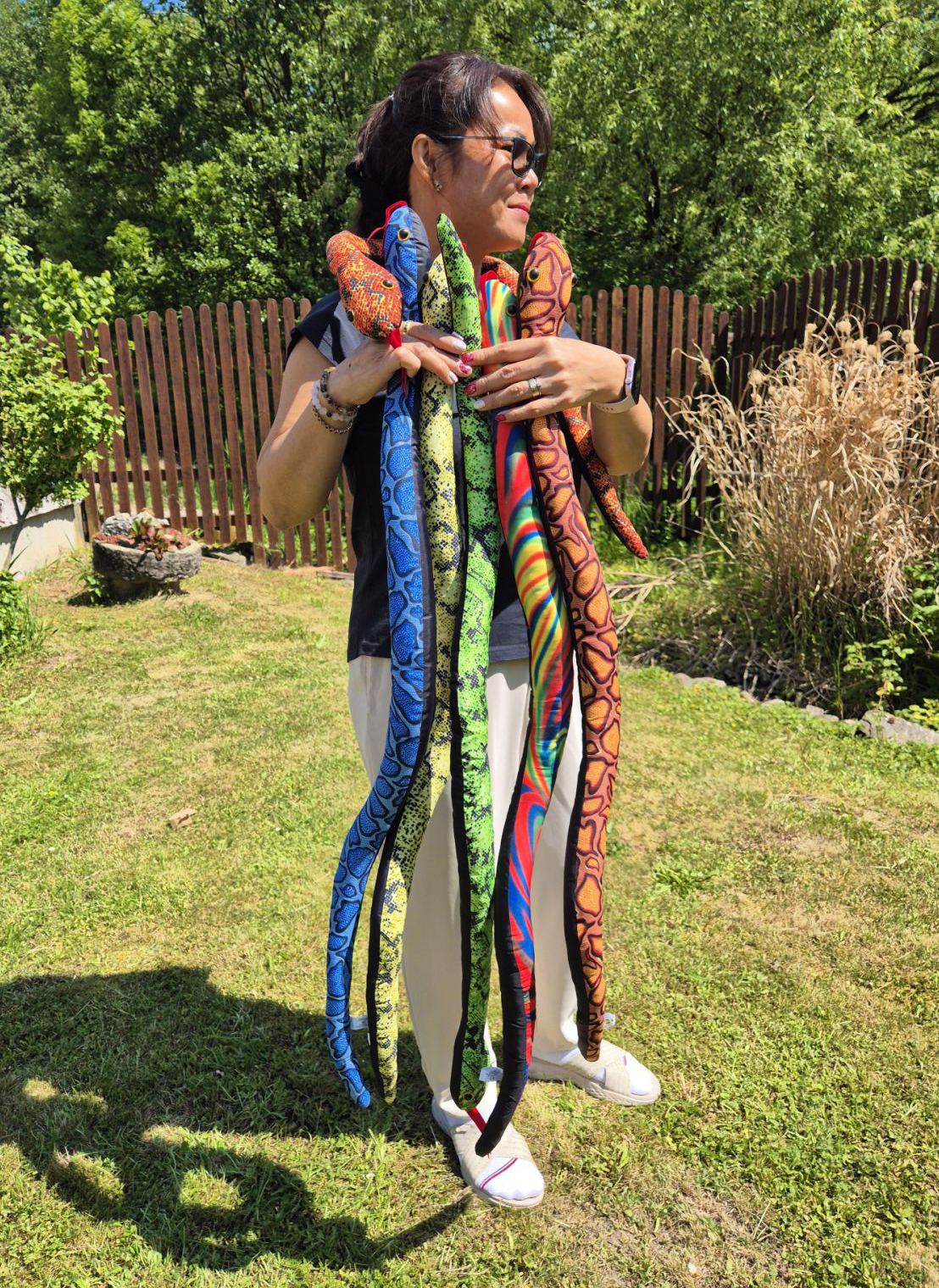 Had z látky plněný střiží. Délka hada 1m, váha 120g. Výrobek je certifikovaný, vhodný pro děti od 3let.