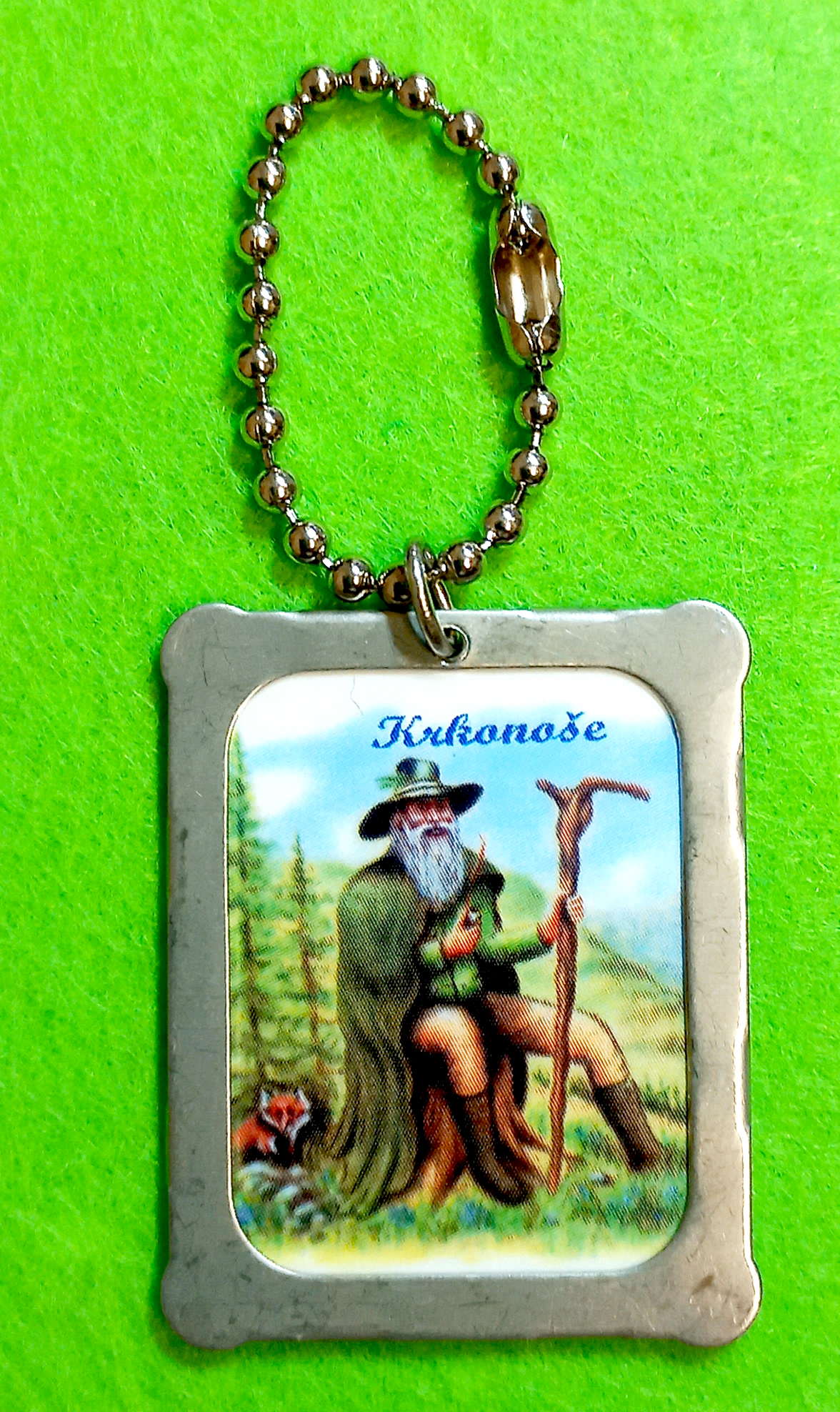 Kovová klíčenka s foto Krakonoše 2,5 x 3,5 cm, zapínání na lodičku. Celková délka klíčenky 6cm.