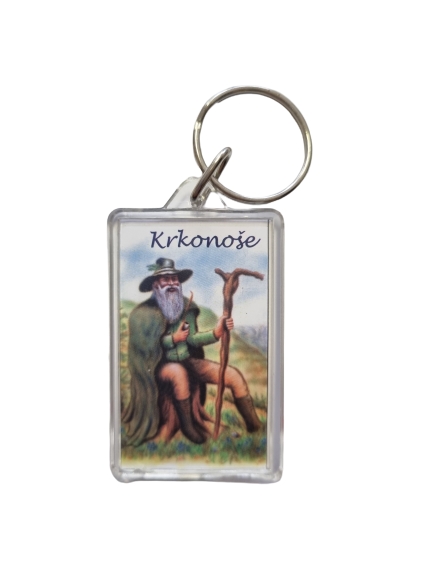 Oblíbená klíčenka s teploměrem v plastu a autorským obrázkem Krakonoše.