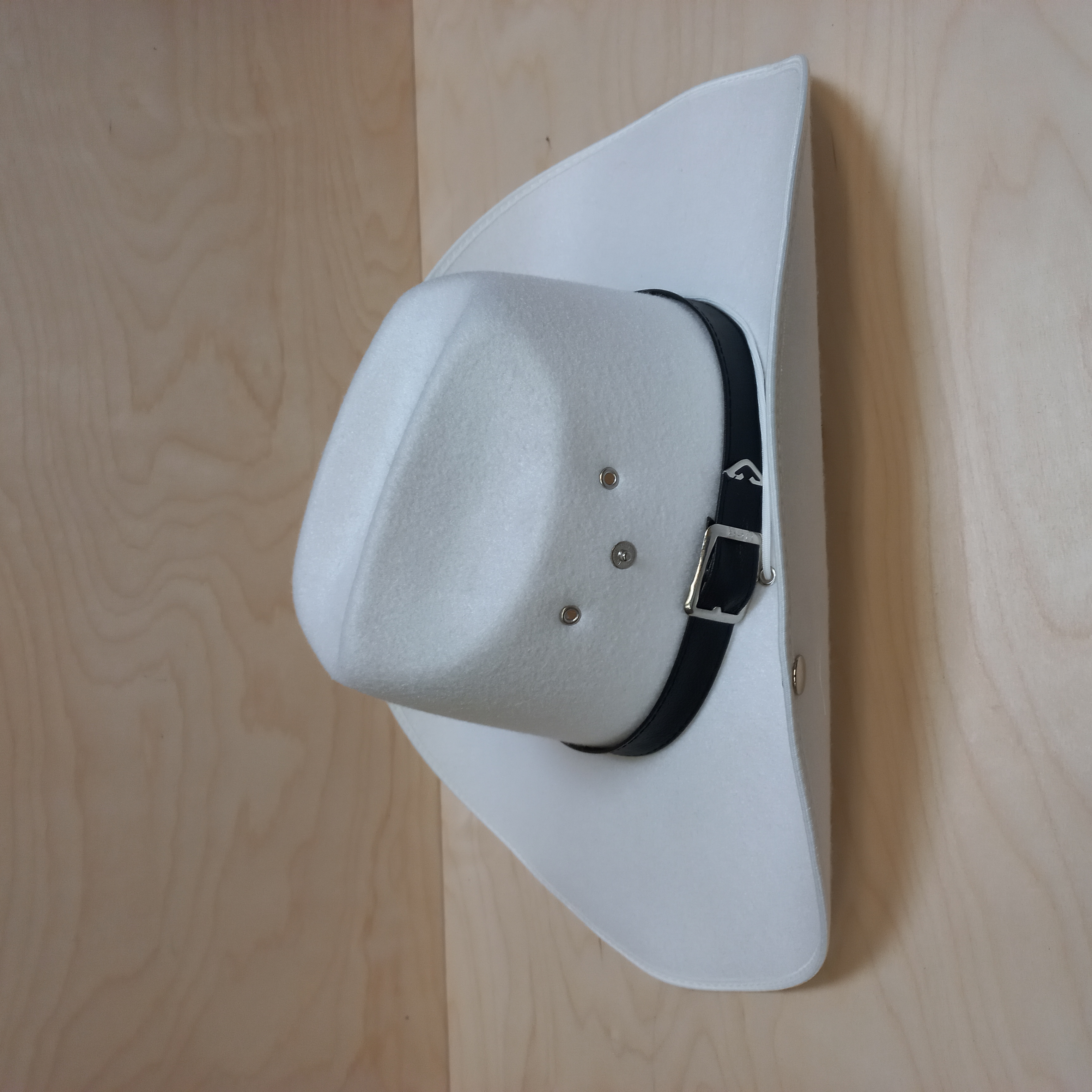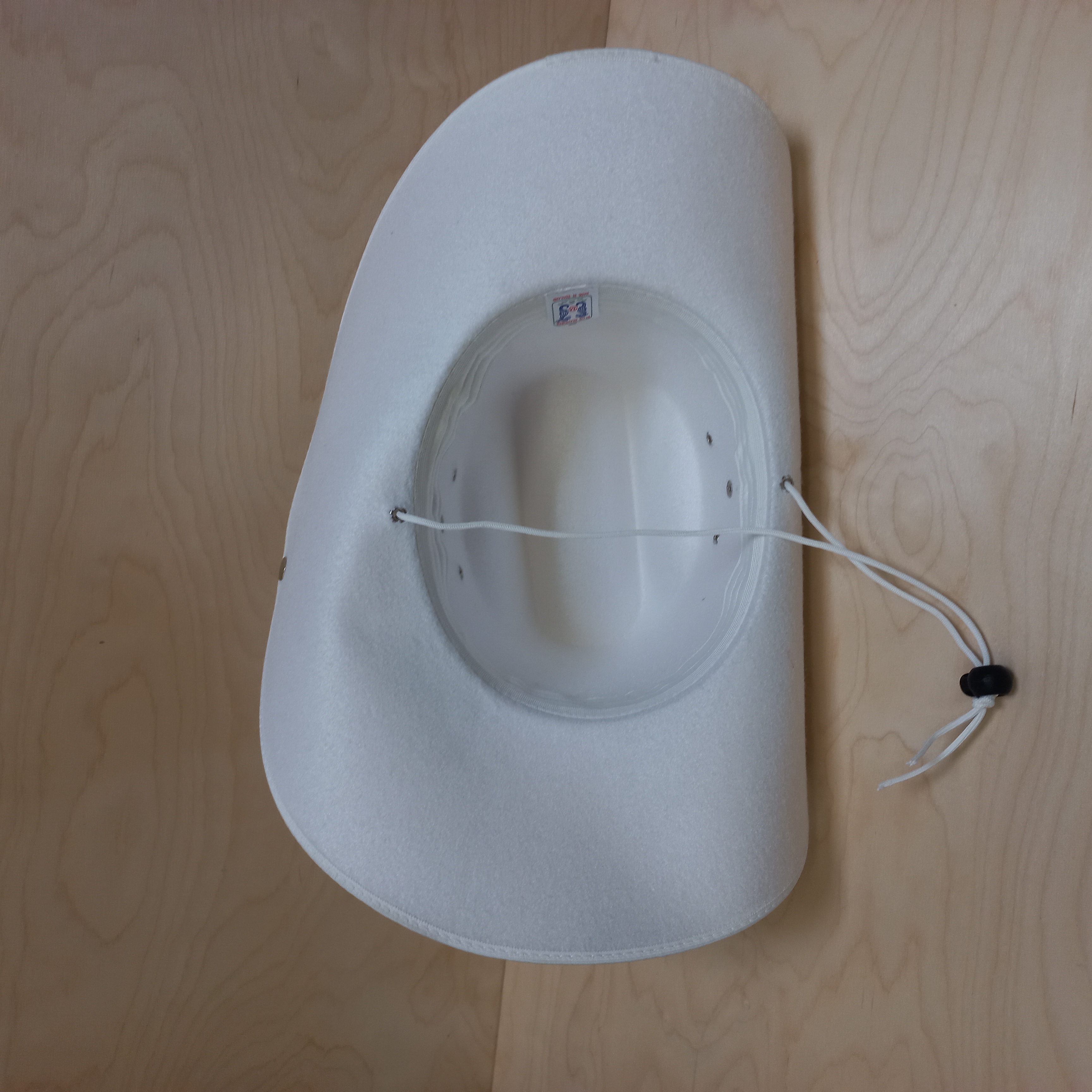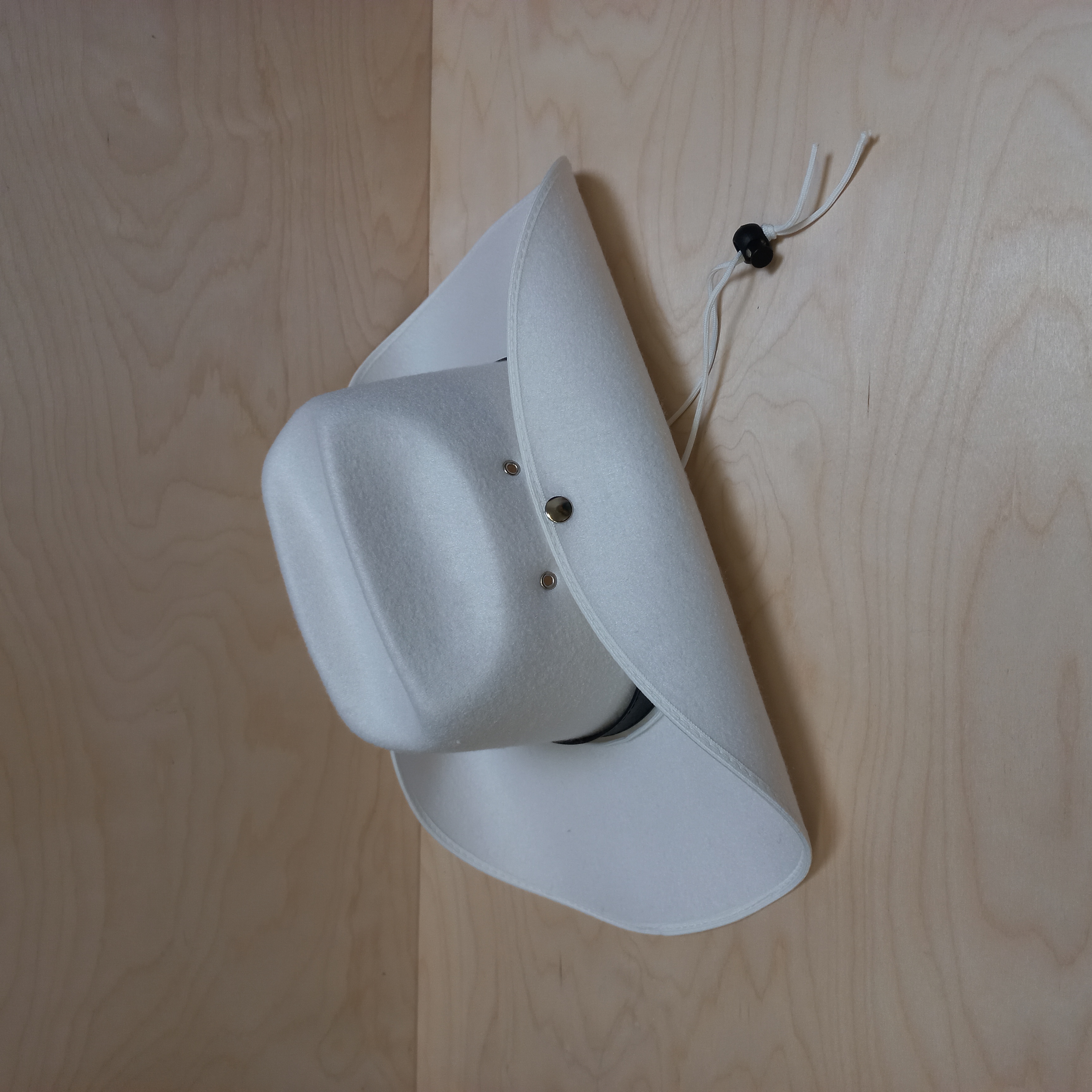 Westernový klobouk L z umělého filcu a šňůrkou se zdrhovadlem ,obvod 57cm , barva bílá