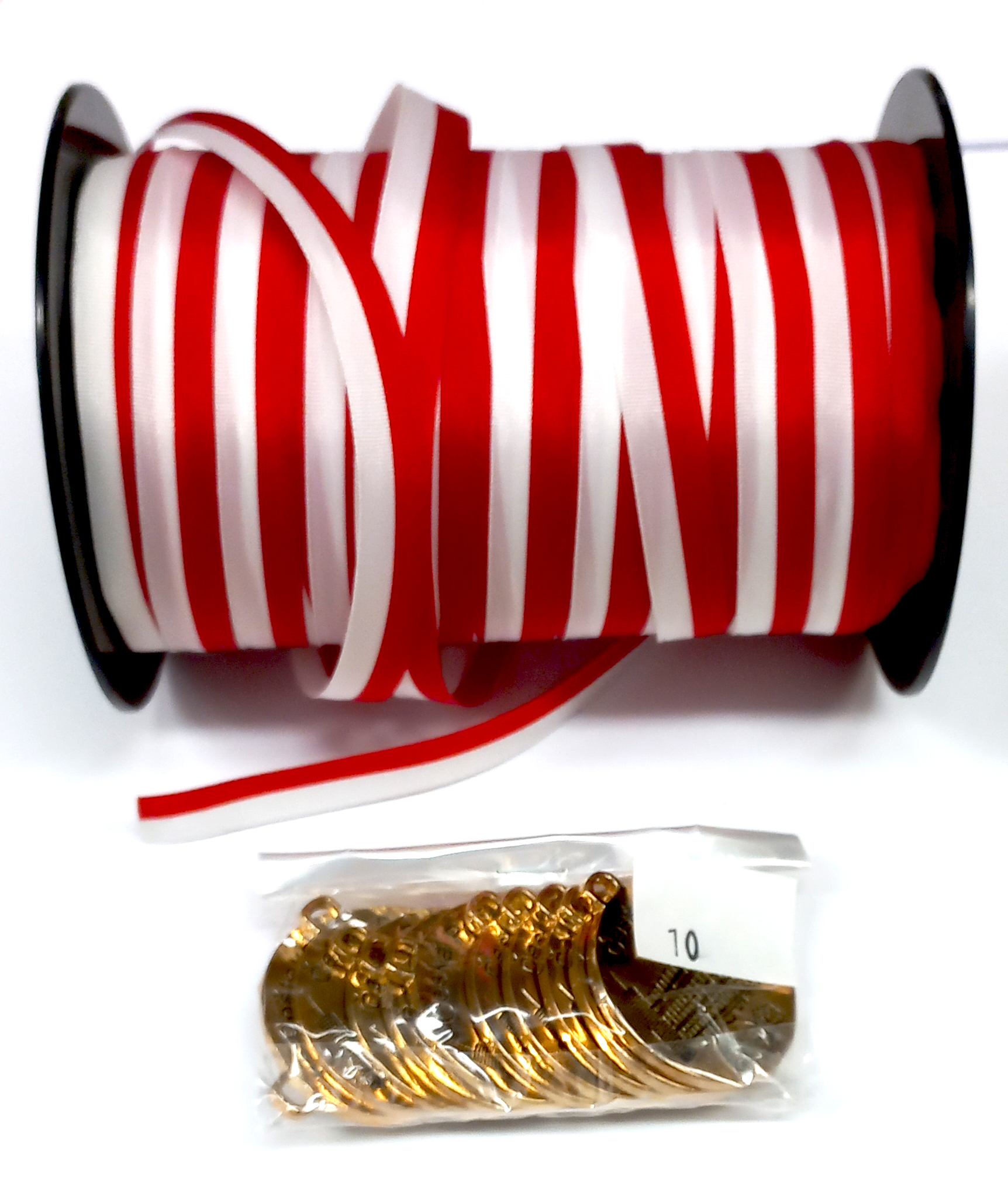 Kovová medaile prům.3cm. Medaile nejsou navlečeny - stuha je dodávána v metráži - na každou medaili 90cm.