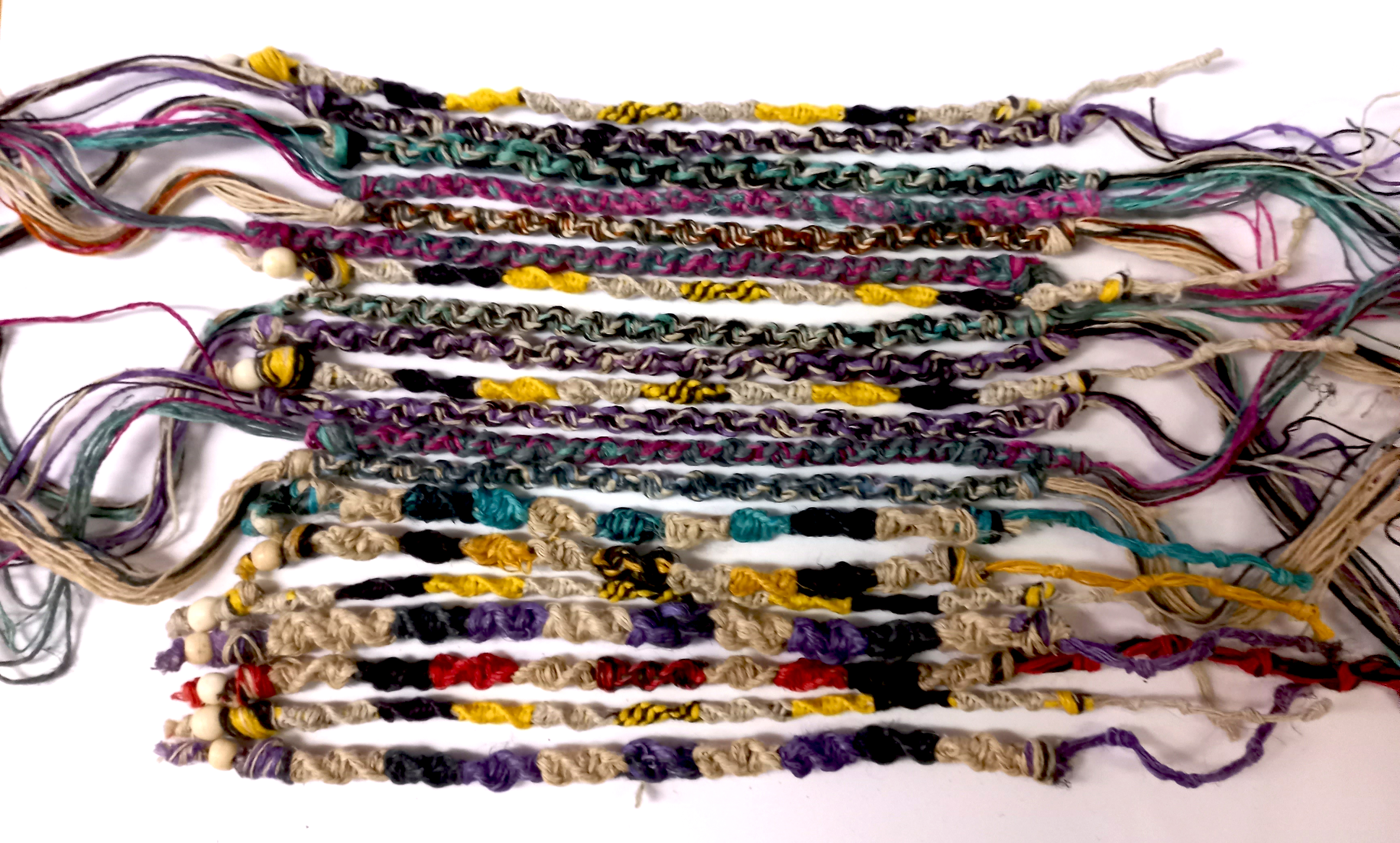 Náramek z bavlněných šňůrek, zavazovací, nebo zapínání na korálek.