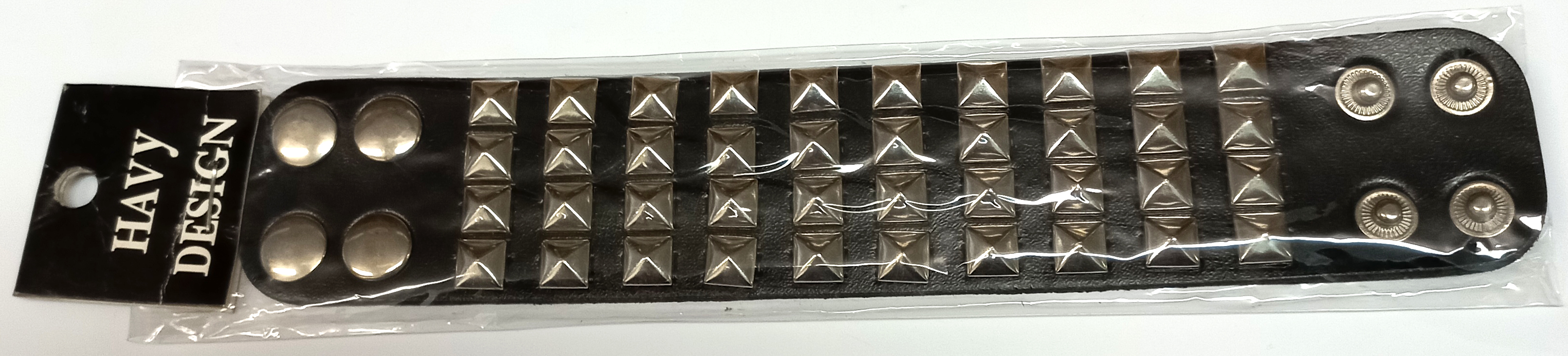 Náramek čtyřřadý - koženka a kovové cvočky. Průměr náramku 5,8cm.Dodáváme v balení 12ks