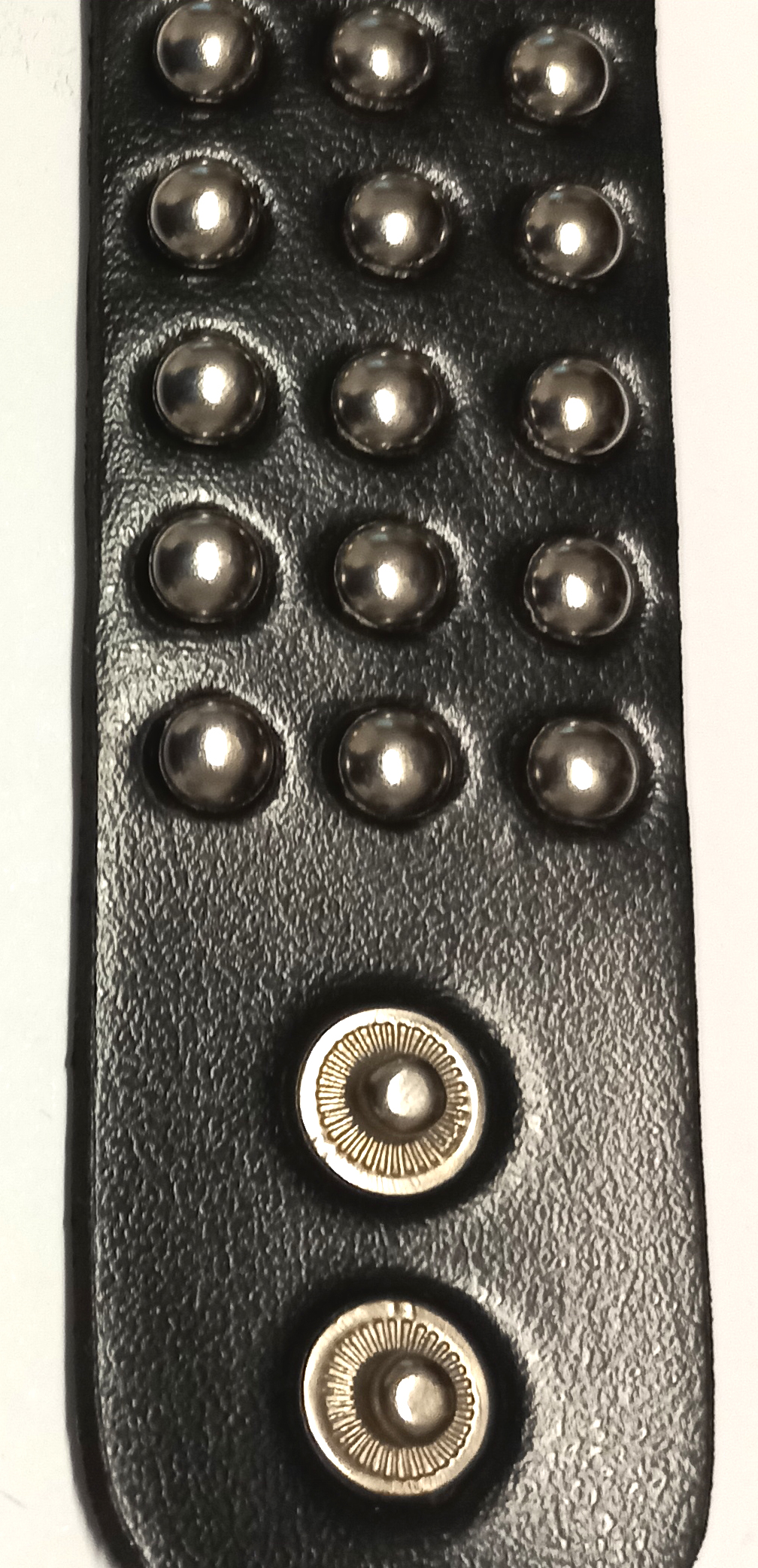Náramek třířadý - koženka a kovové cvočky. Průměr náramku 6,2cm.Dodáváme v balení 12ks