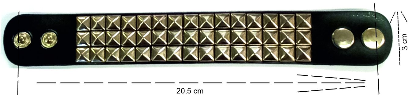 Náramek třířadý - koženka a kovové cvočky. Průměr náramku 5,8cm.Dodáváme v balení 12ks