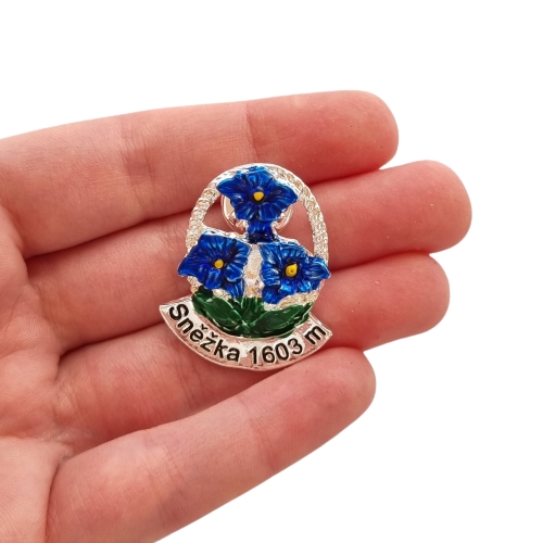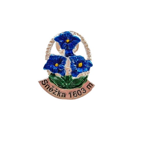 Tři květy hořce s nápisem Sněžka 1603 m.