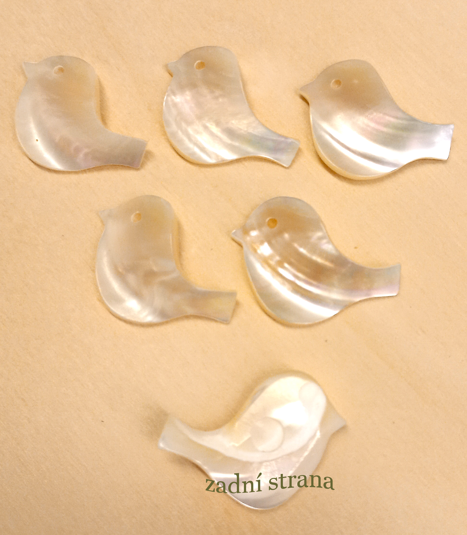Polotovar z přírodní perleti - knoflík ve tvaru ptáčka cca 3,4x2cm s krásným perleťovým leskem.