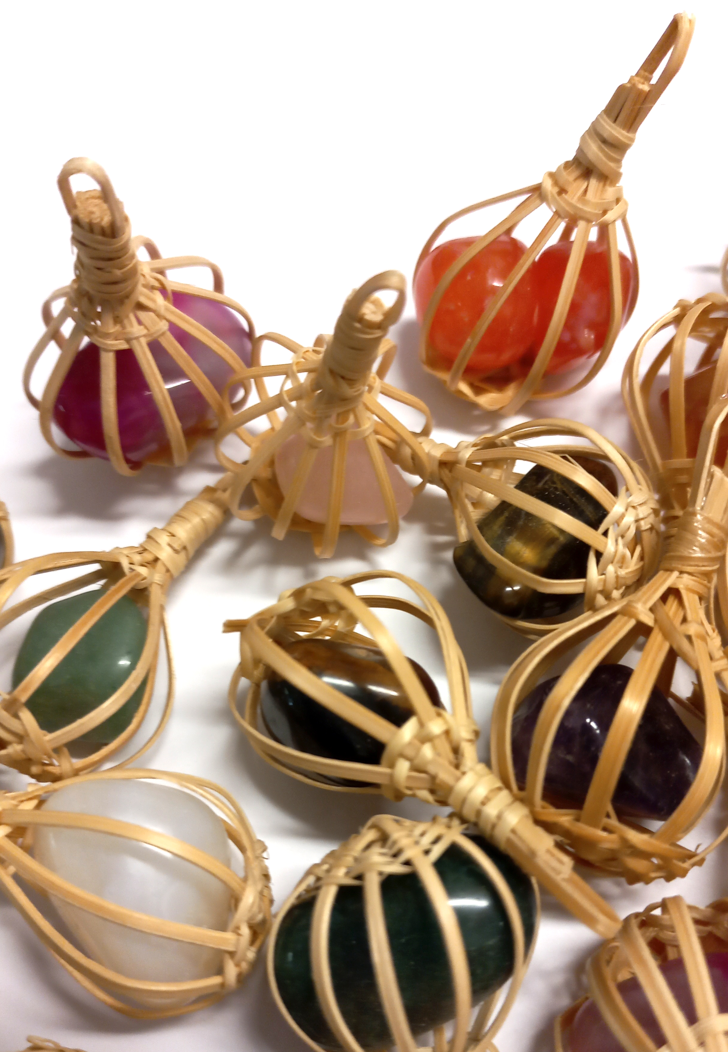 Přívěsek minerál v bambusové klícce. Dodáváme v mixu ,balení 20ks. Doprodej