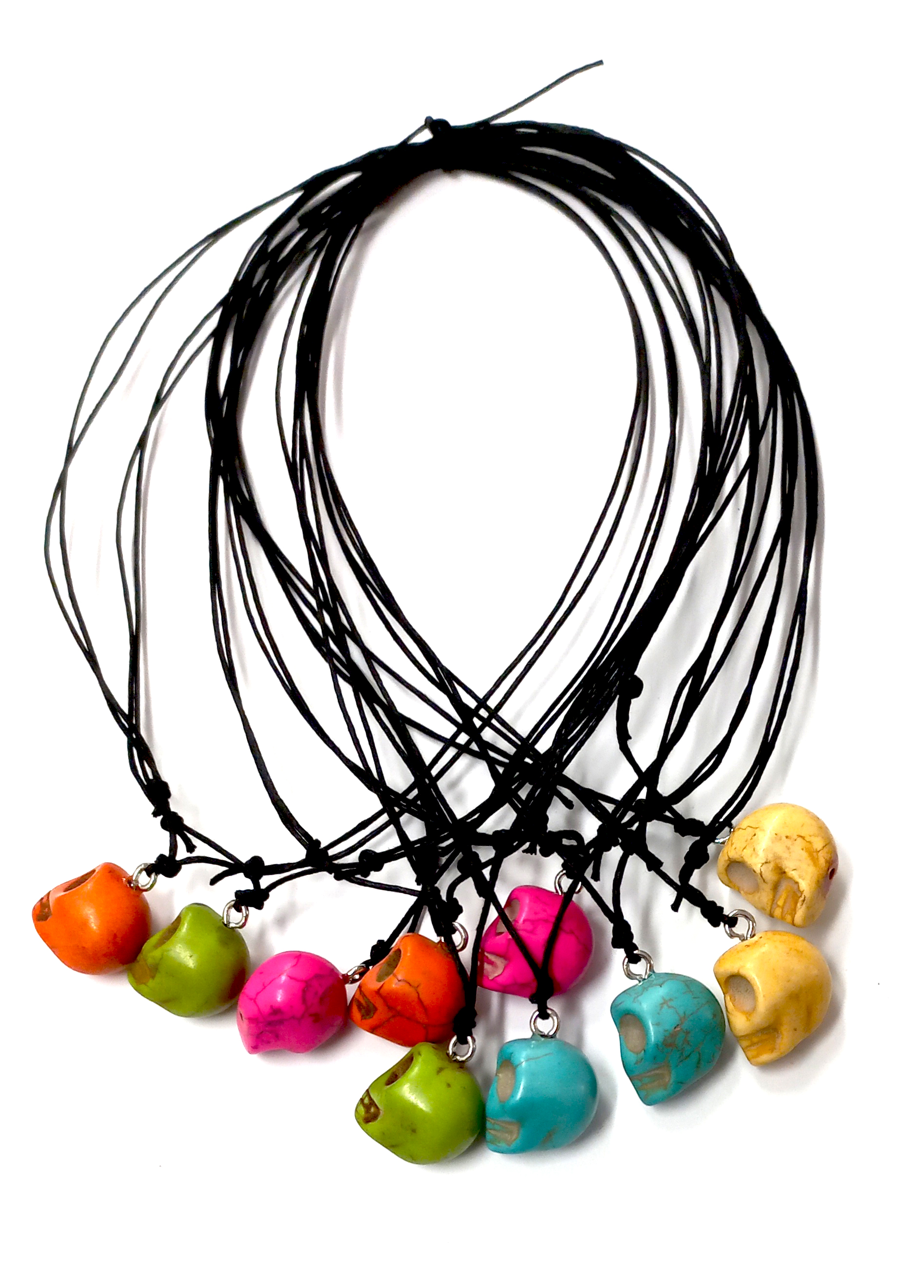 Přívěsek barvený howlit mix ve tvaru lebky 1,9x1,5cm, na stavitelné šňůrce .